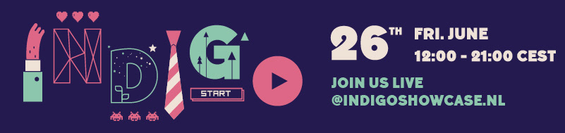 Design for Dutch game event Indigo. For the event promotional material was made for social media. Furthermore an overlay was designed for the livestream of the event, since this took place during the Covid-19 lockdown period.